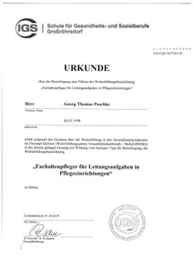 Von 2014 bis 2017, absolvierte er eine Ausbildung zur examinierten Altenpflegefachkraft. Von 2018 bis 2019 schloss er erfolgreich die Weiterbildung zum Pflegedienstleiter ab.